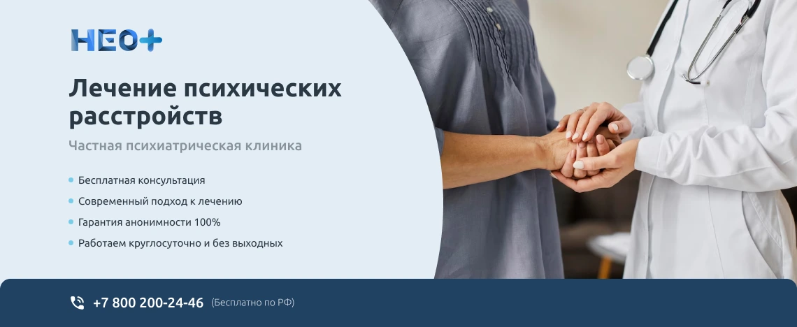 Записаться на прием к врачу-психиатру можно на официальном сайте клиники «НеоПлюс» в Буинске или по телефону ☎️ +7 (800) 200-24-46. Звоните нам, не запускайте проблему. Мы знаем, как вернуть здоровье и покой в Вашу семью!